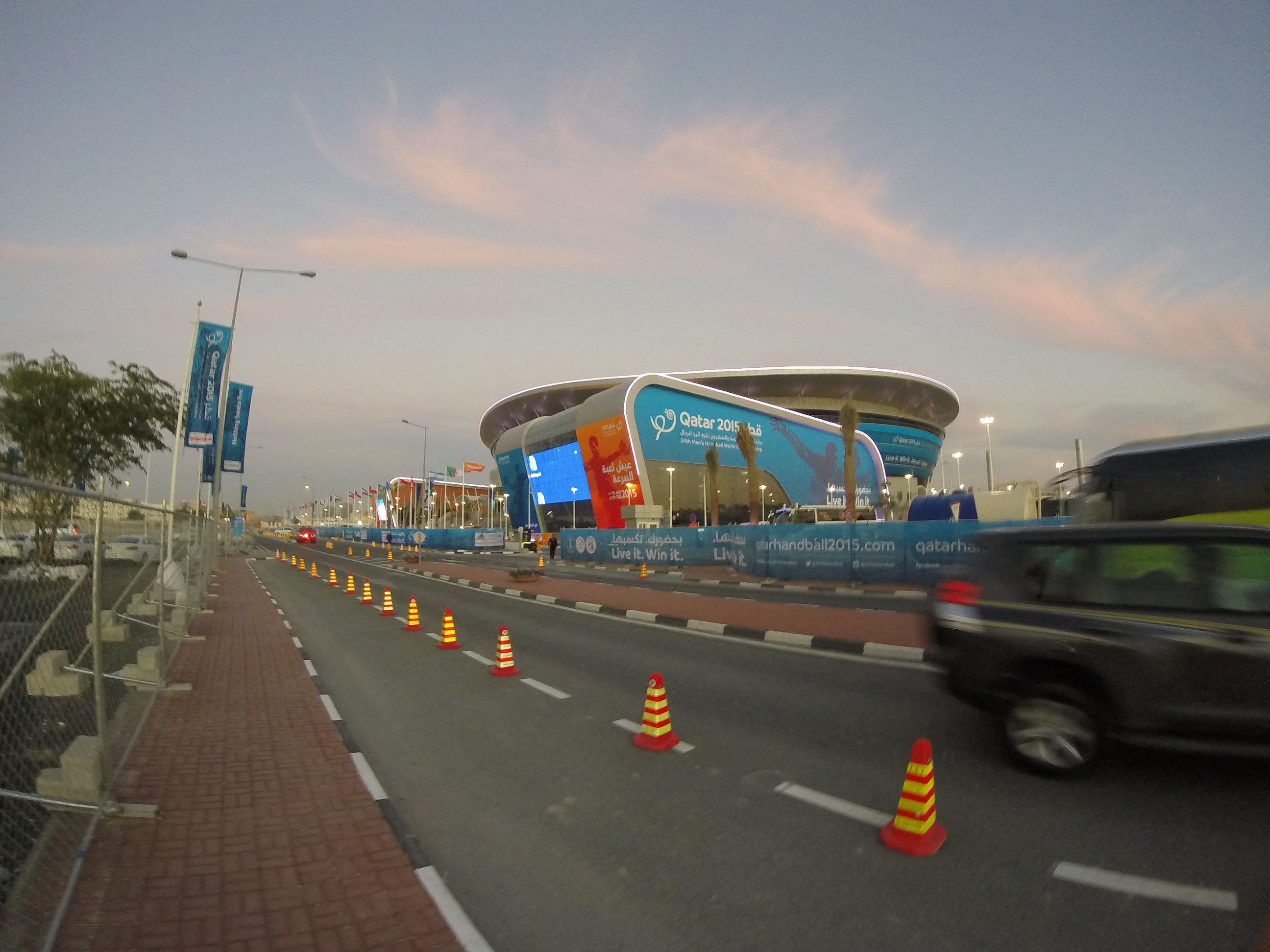 Później ponownie wsiadłem w autobus i wyruszyłem zwiedzać miasto, miałem pecha bo autobus wywiózł mnie i Krysię na rogatki, kiedy przymknęło nam się oko. Kierowca wyprosił mnie z autobusu w okolicach dużej hali warzywno-owocowej. Skoro już tutaj jesteśmy Krysiu, chodźmy na arbuza, powiedziałem – 8-kilogramowy owoc kosztował 15 złotych i smakował najlepiej na świecie. Do tej pory najbardziej lubiłem gruzińskie i rosyjskie arbuzy. Zrobiło się późno, więc pora było wracać do centrum. Nie jechał żaden autobus przez ponad godzinę, dlatego zdecydowałem, że pojedziemy taksówką. Wiedziałem, że w Katarze paliwo jest tanie jak woda to i „taryfa” też droga nie będzie – pomyślałem. Miałem racje za 30 minut jazdy zapłaciłem 17 złotych. Hala wyglądała imponująco i nie był to może taki „krzyk architektury” jak katowicki spodek ale mimo wszystko ładny i nowoczesny obiekt sportowy. Obszedłem arenę wokół i udałem się w stroną pobliskiego stadionu piłkarskiego.