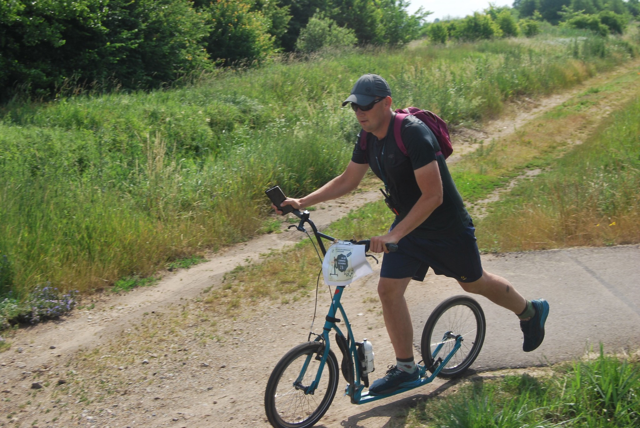 Hulajnoga MIBO Royal w akcji podczas V Leśnego Rajdu Hulajnogowego w Grotowie (Grotów, czerwiec 2023 r., fot. T. Górnaś)