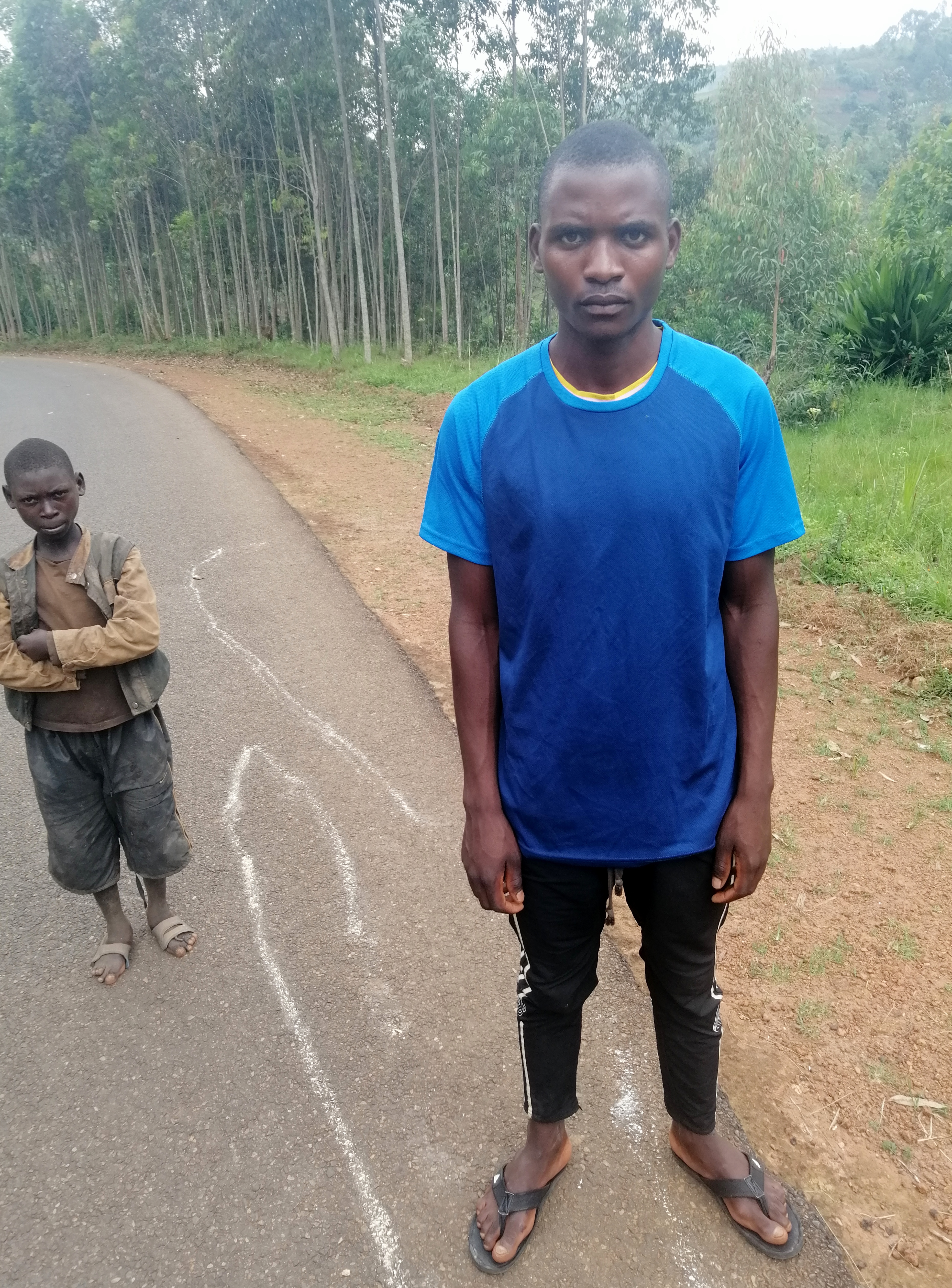 Zostałem na noc w Hotelu Le Paradis (polecam, czysty pokój z wi-fi i ciepłą wodą za rozsądną cenę). W lutym w Burundi nastała już pora deszczowa, więc mój wieczorny spacer ograniczył się do najbliższego sklepu. Woda lała się strumieniami po czerwonych ulicach miasta. Ludzie kłębili się w grupach pod nielicznymi lokalami usługowymi. Następnego dnia wcześnie rano rozpocząłem drogę do Bużumbury. Pierwsze 20 kilometrów było długim, monotonnym podjazdem. W trakcie wędrówki na przemian z mozolnym hulaniem zaczepiali mnie liczni tubylcy. W znakomitej większości krzyczeli Bonjour Monsieur. Niekiedy prosili o podarunek, słodycze, wodę lub pieniądze. Pewne spotkanie było dla mnie tak uciążliwe, że podarowałem chłopakowi koszulkę sportową.