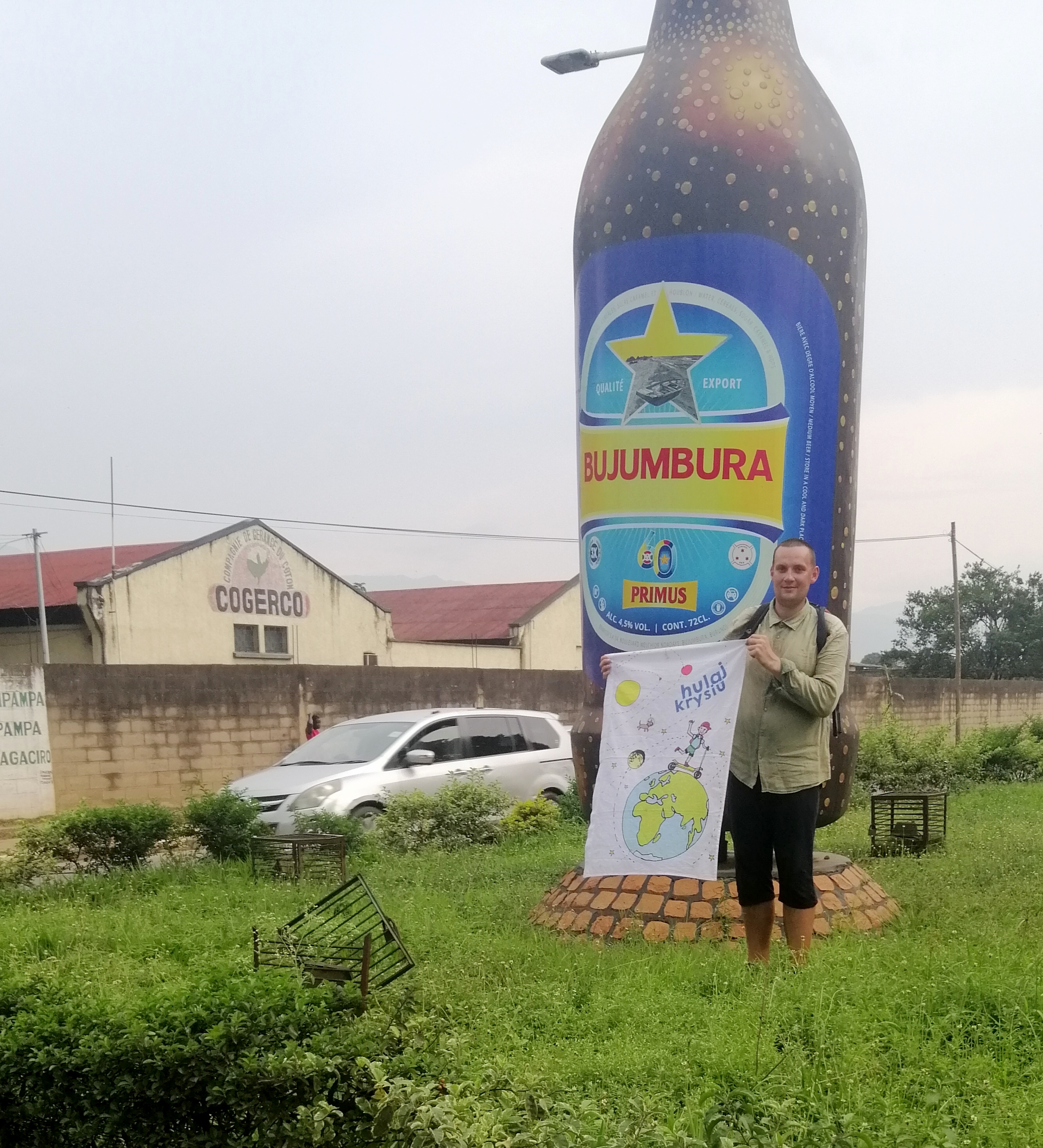 Następne trzy dni hulałem po Bużumburze i okolicach. Zauważyłem że dobrze było hulać od rana do 15. Ponieważ każdego dnia punktualnie o 15 rozpoczynała się burza z piorunami. Bużumbura bardzo mi się podobała, piękne kolonialne kamienice, skwery z kawiarniami serwującymi french press, radośni chociaż biedni ludzie. Jednak klimat nie był najlepszy do hulania, było duszno, wilgotno i gorąco. W okolicy odwiedziłem Park Narodowy Delty Rzeki Rusizi, interesująco wyglądający port lotniczy oraz miejsce spotkania brytyjskich odkrywców Livingston oraz Stanley (panowie spotkali się 25-27 Listopada 1871 roku). Pewnego razu w mieście goniła mnie grupa Burundyjczyków, ale miałem z górki więc bez problemu zwiałem. Na swej hulajnogowej drodze spotkałem śliczną Burundyjkę, która twierdziła, że jej przodek był królem. Dlatego też poszczycę się, że hulajnogi dosiadła Księżniczka z Burundi. Warto wspomnieć, że podczas podróży powrotnej do Rwandy spotkałem Alexisa z którym jestem w kontakcie do dzisiaj. Chłopak jest nauczycielem francuskiego oraz zalicza się do zaplecza kadry kolarskiej Burundi. Z krajobrazów krajów zapamiętam żywo zielone wzgórza oraz bliskość kawy. Hulając po drogach wielokrotnie widziałem krzewy kawowca. Kilka razy piłem znakomitą Arabicę oraz wypełniłem sakwy hulajnogowe różnymi opakowaniami ziarnistej kawy. Zieleń burundyjska w moim odczuciu była bardziej żywa niż w Rwandzie. W ogóle gdybym miał porównywać obydwa kraje zdecydowania głosuje za Burundi.